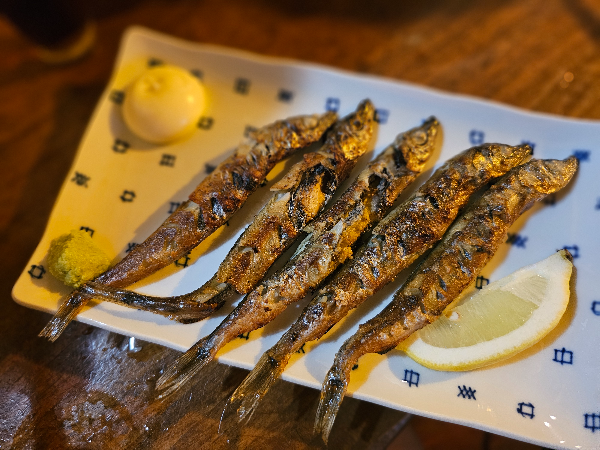 남편이 한 번도 먹어본 적 없다고 해서 오랜만에 시샤모 구이도 시켰어요.