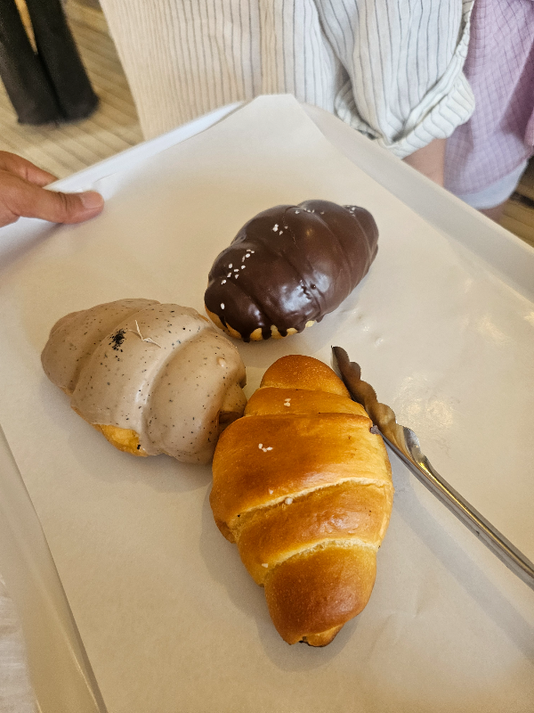 저는 플레인, 얼그레이, 초콜릿 소금빵 이렇게 세 종류를 포장해왔어요.