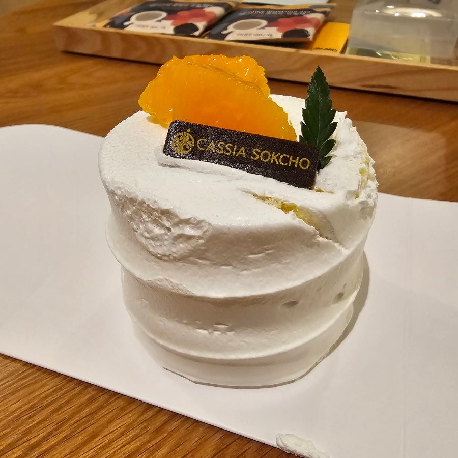 생일 기프트로 생크림 망고 케이크를 주셨습니다.