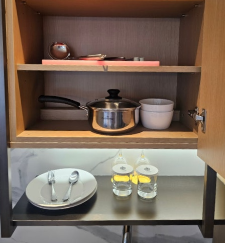 간단한 조리도구와 식기류가 있으니 편하실 것 같아요.